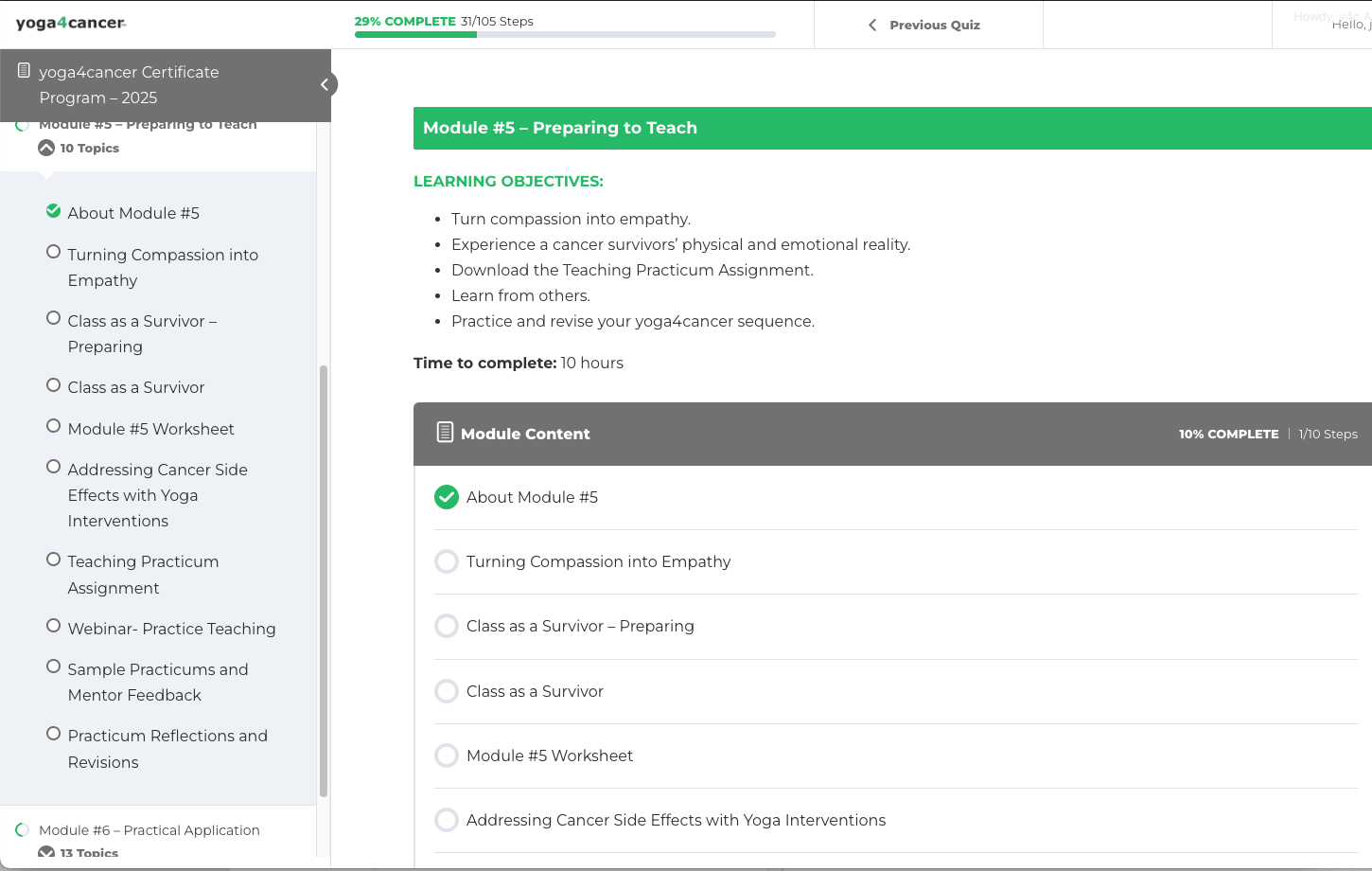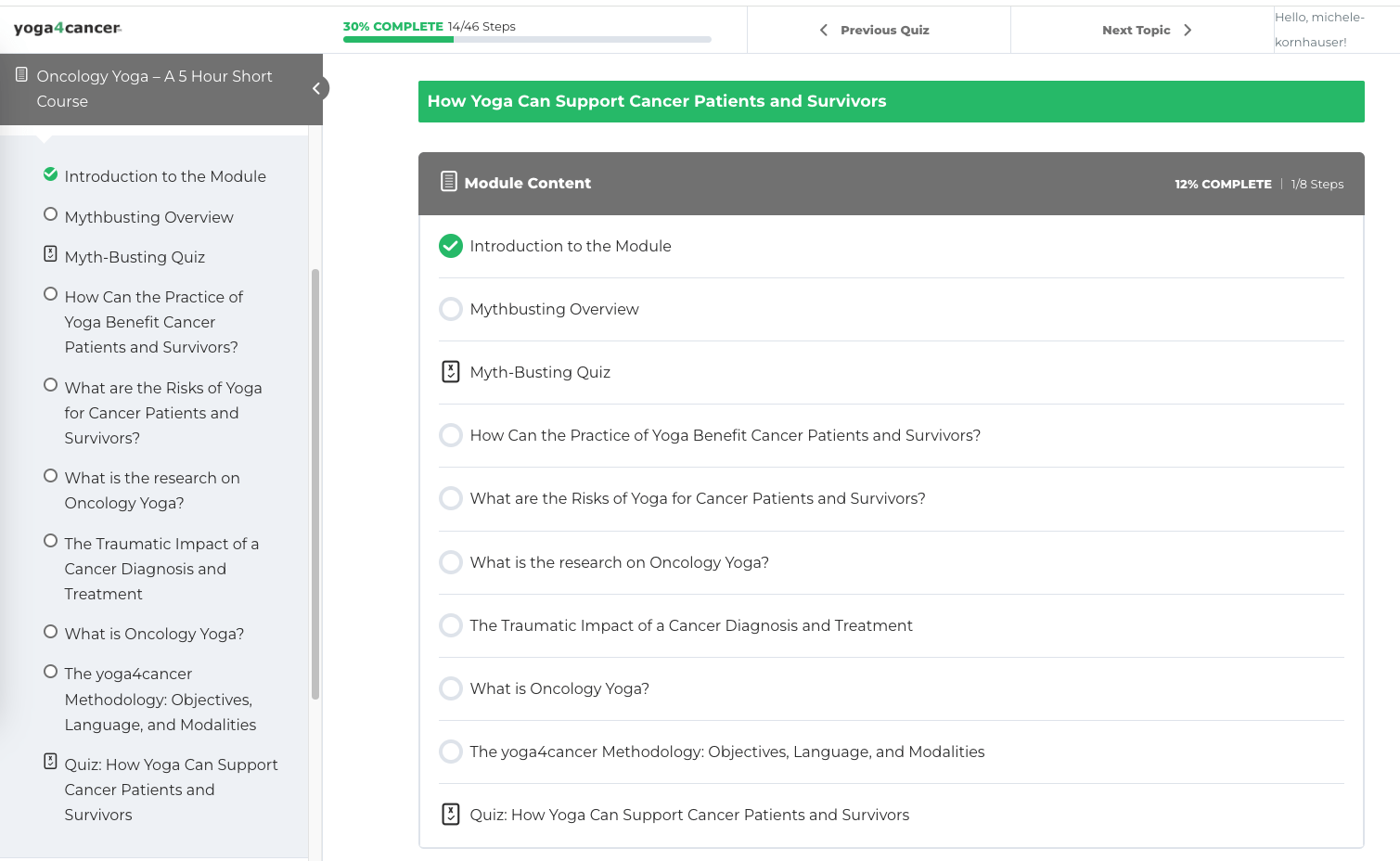 The yoga4cancer “Teaching Oncology Yoga” Certificate Program is a online, self-paced training designed for busy yoga professionals worldwide. It includes expertly designed videos, assignments, webinars, quizzes, guided practices, and personalized mentor support.